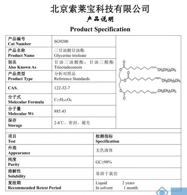 产品名称: Trioctadecenoin;三甘油酸甘油酯